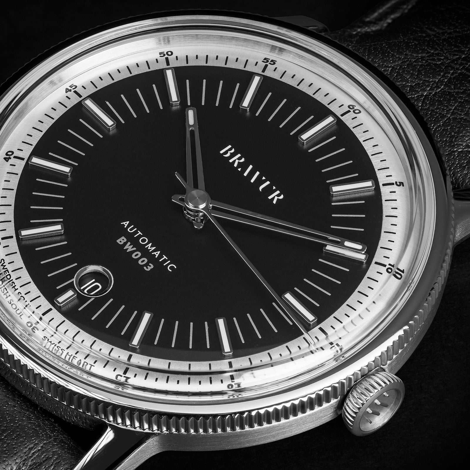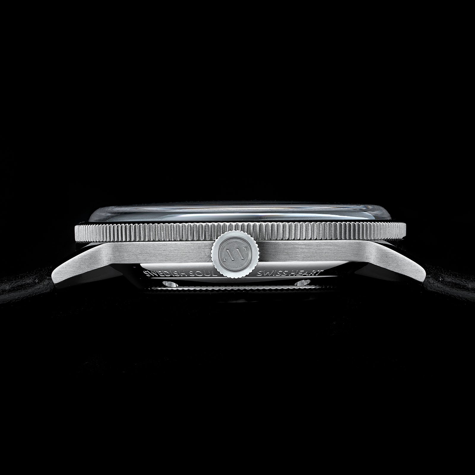 Stainless steel case crafted from Swedish high grade steel, housing a Swiss made 25 jewel automatic movement.