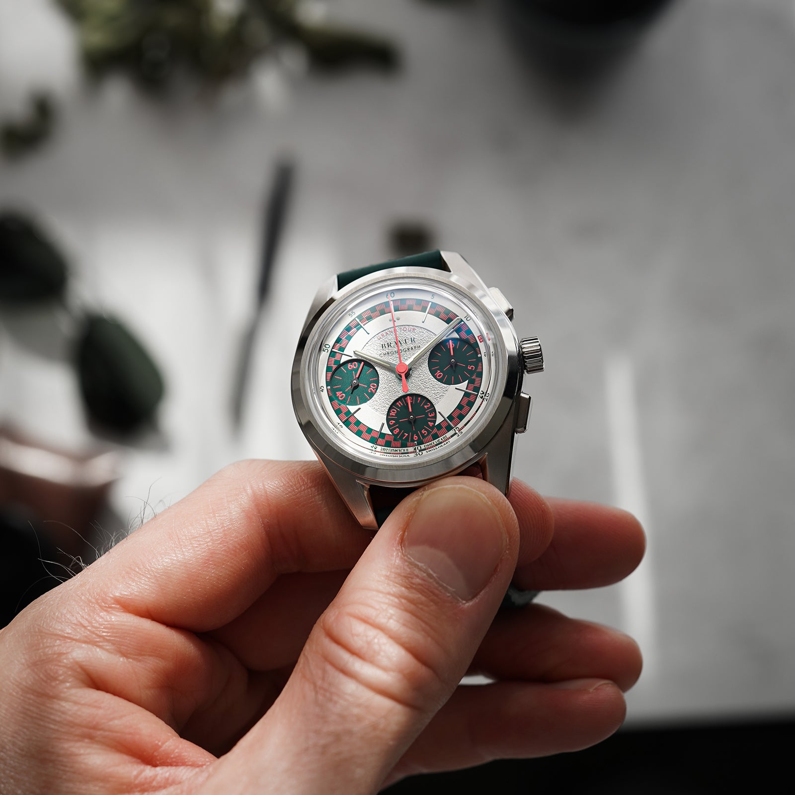 Each Grand Tour watch is hand-built in our workshop in Båstad, in the south of Sweden. Here, our watchmaker carries out assembly, testing, and — when required — fine regulation of the movement to ensure accuracy.