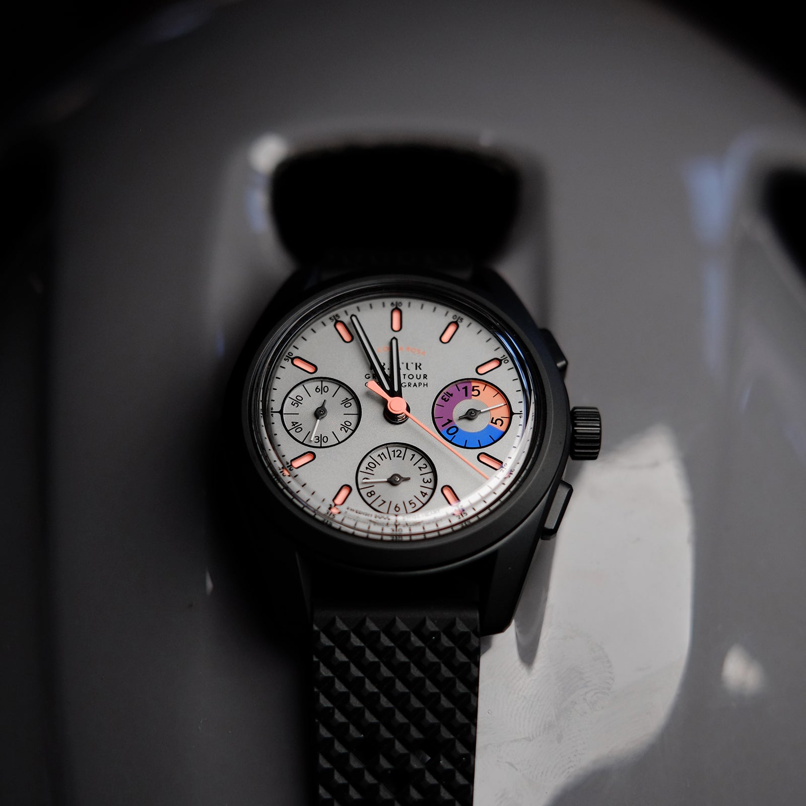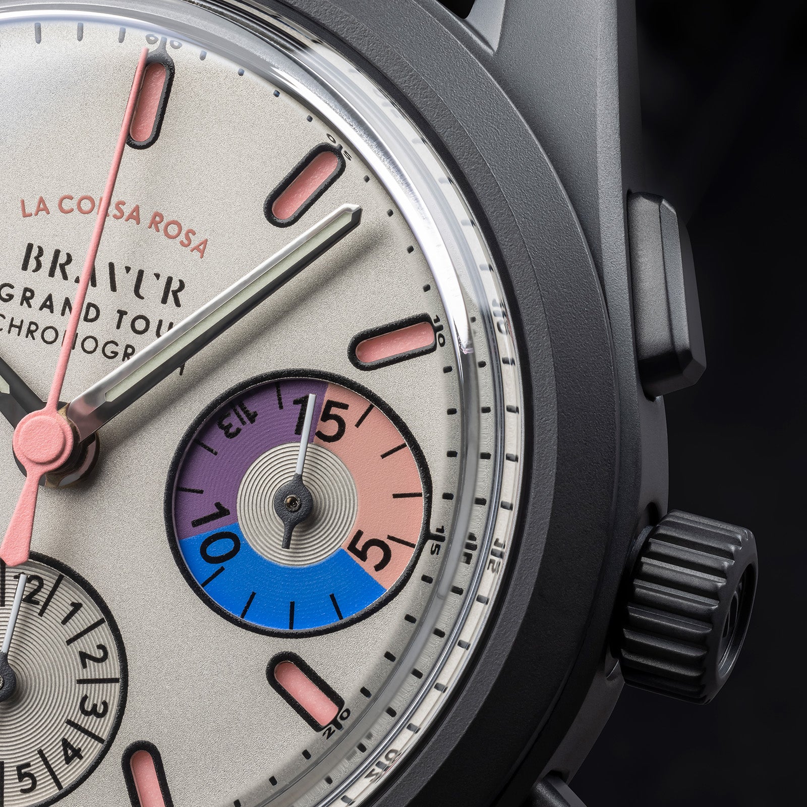 Like all Grand Tour models, the dial features an upside-down number 13—a tribute to the long-standing cycling tradition where riders flip their race number 13 to avoid bad luck, a superstition still honored by many in the peloton today.