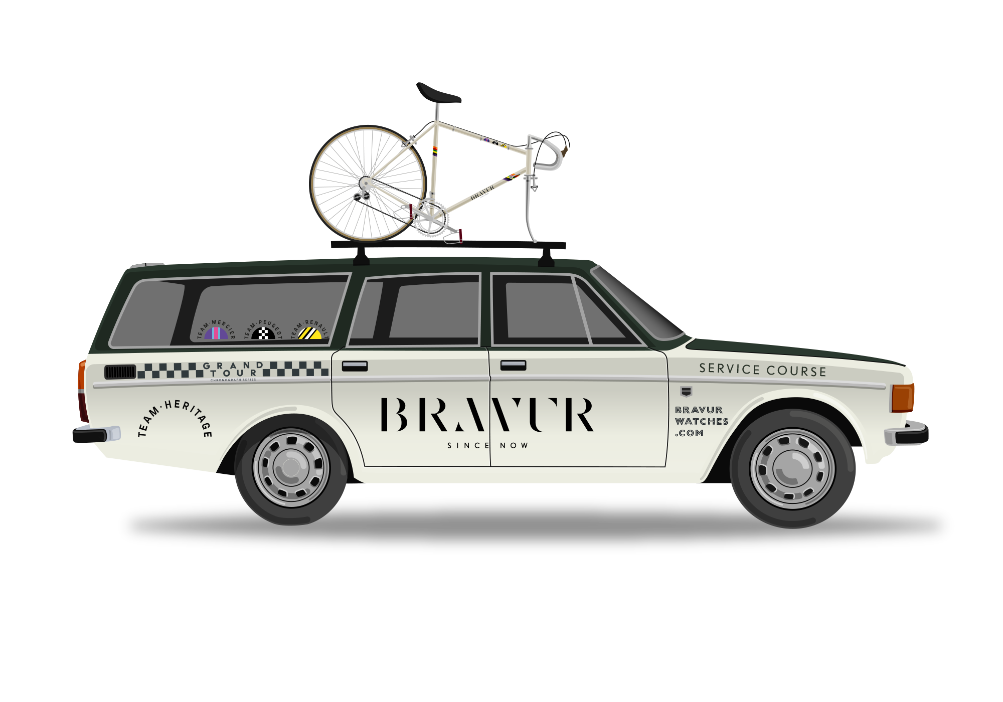 Look for our 1973 Volvo 145 if you visit any of the races in Europe this summer. We'll be at a selection of races with the car. If you see it, take a picture and tag the picture with #bravurservicecourse on Instagram to have the chance to win a Bravur cycling jersey.