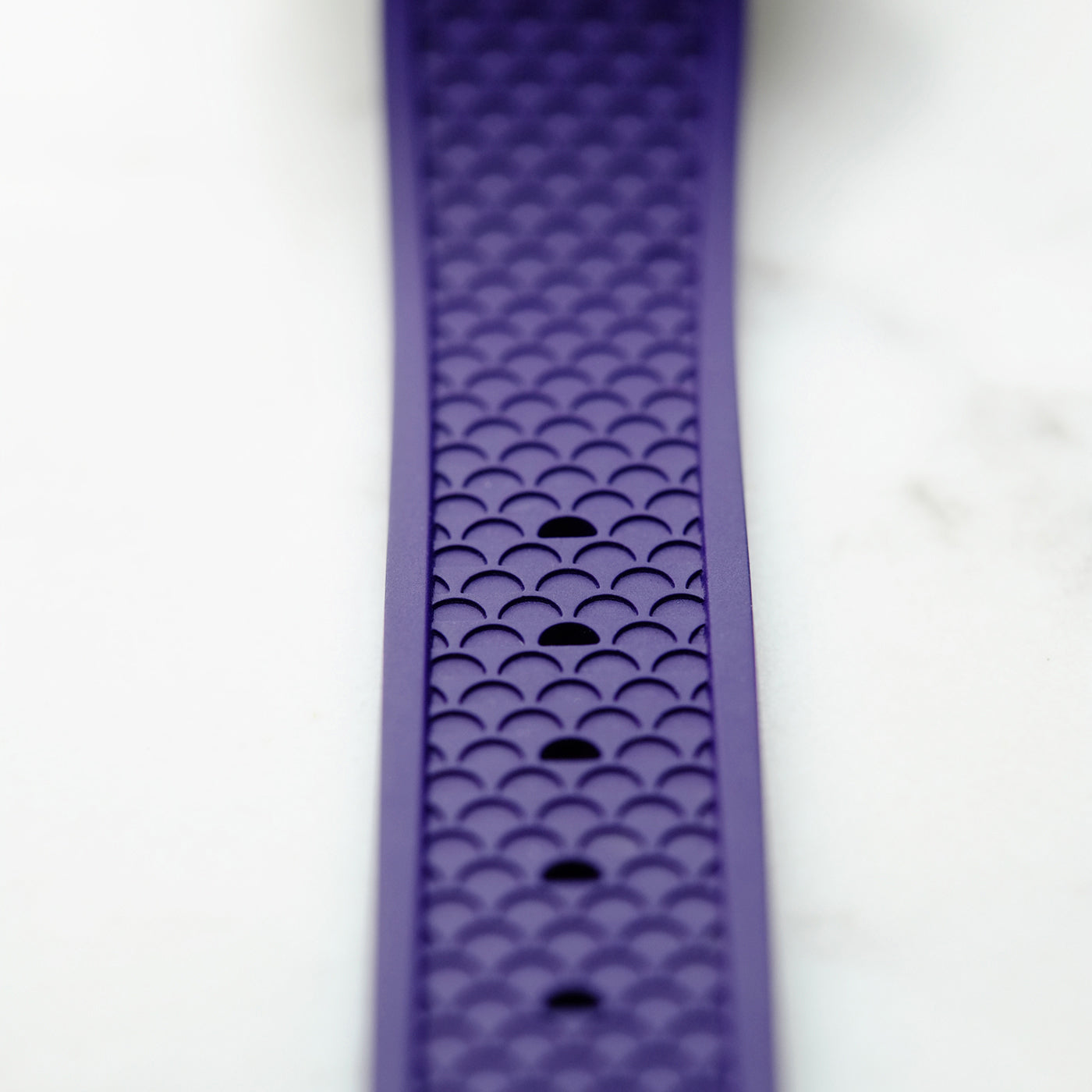 The rubber strap also features the cycling cap, creating the pattern on the strap. The strap is very soft and comfortable to wear, and is integrate into the shape of the case.