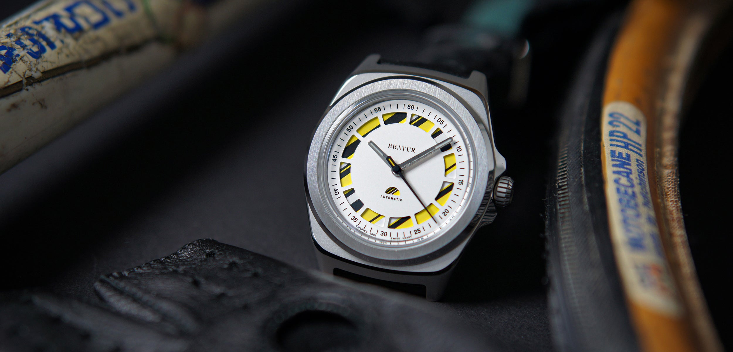 The lower level of the sandwich dial features the iconic team stripes, revealed partially through openings of the center and periphery connected by a spoke-like pattern, creating a ’floating’ illusion with a rich depth. A black perforated leather strap gives the REN a vintage look while integrating an optional rubber strap adds a contemporary and sporty finish.